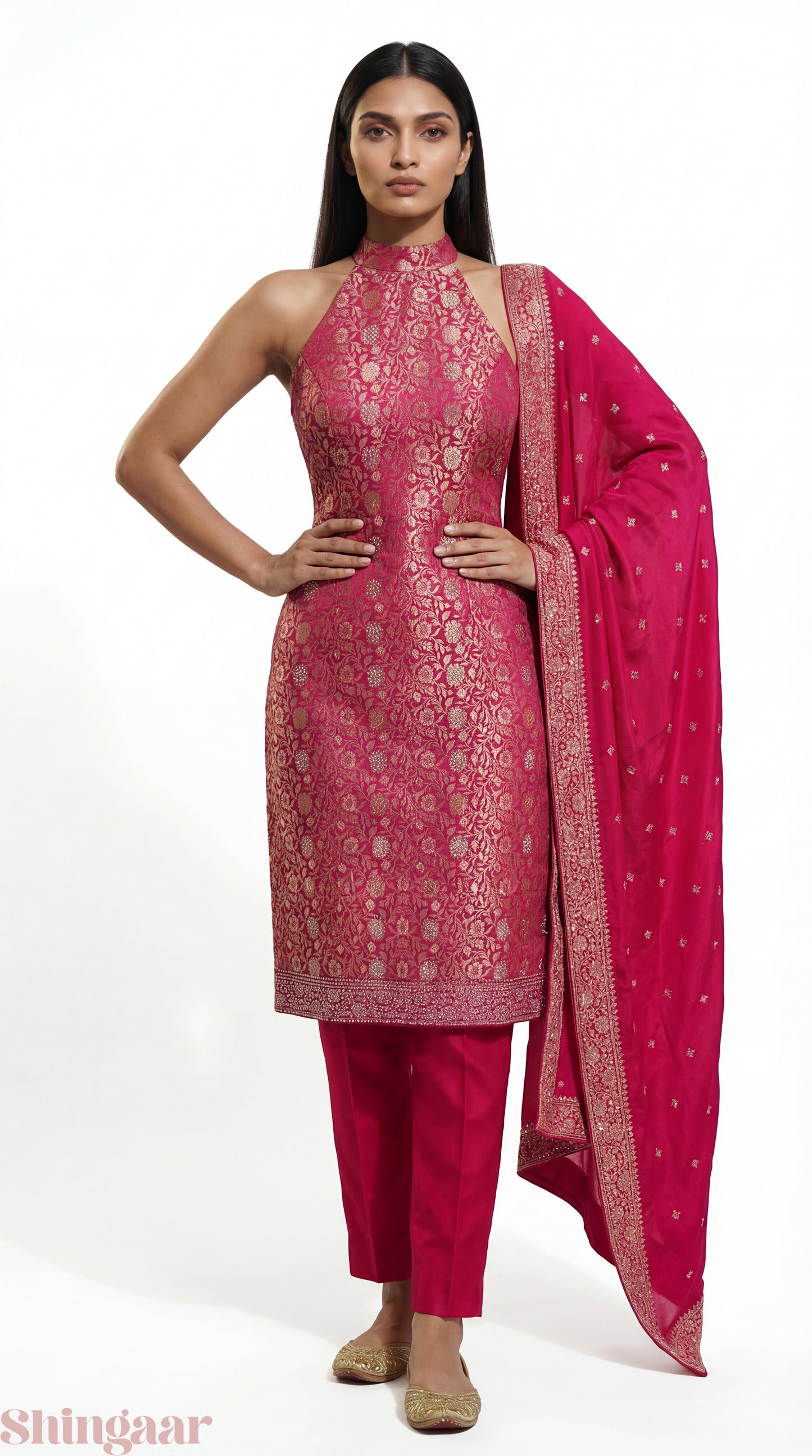 Banarasi Silk Unstitched Suit – Pink Luxury Wedding & Festive Wear