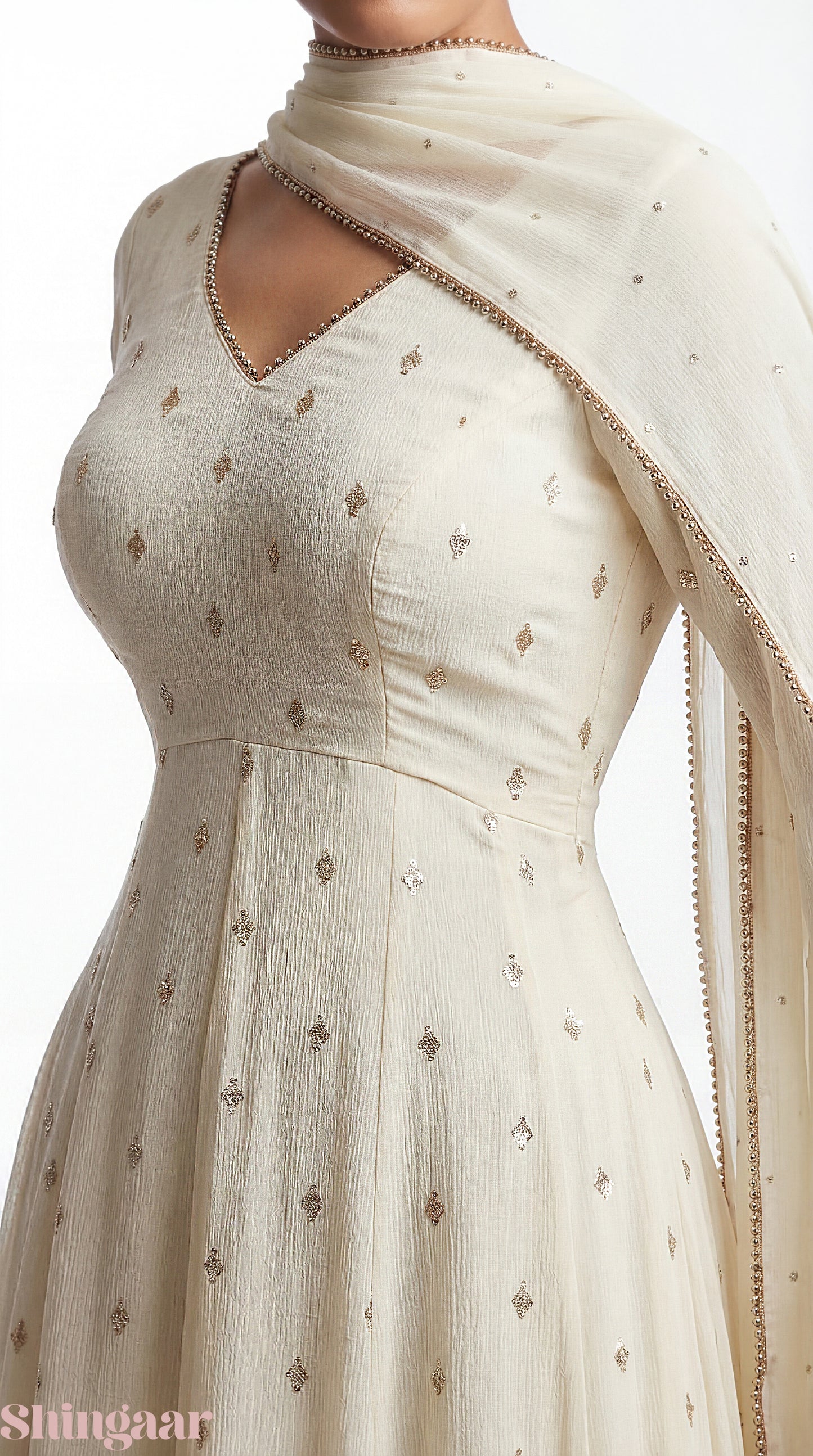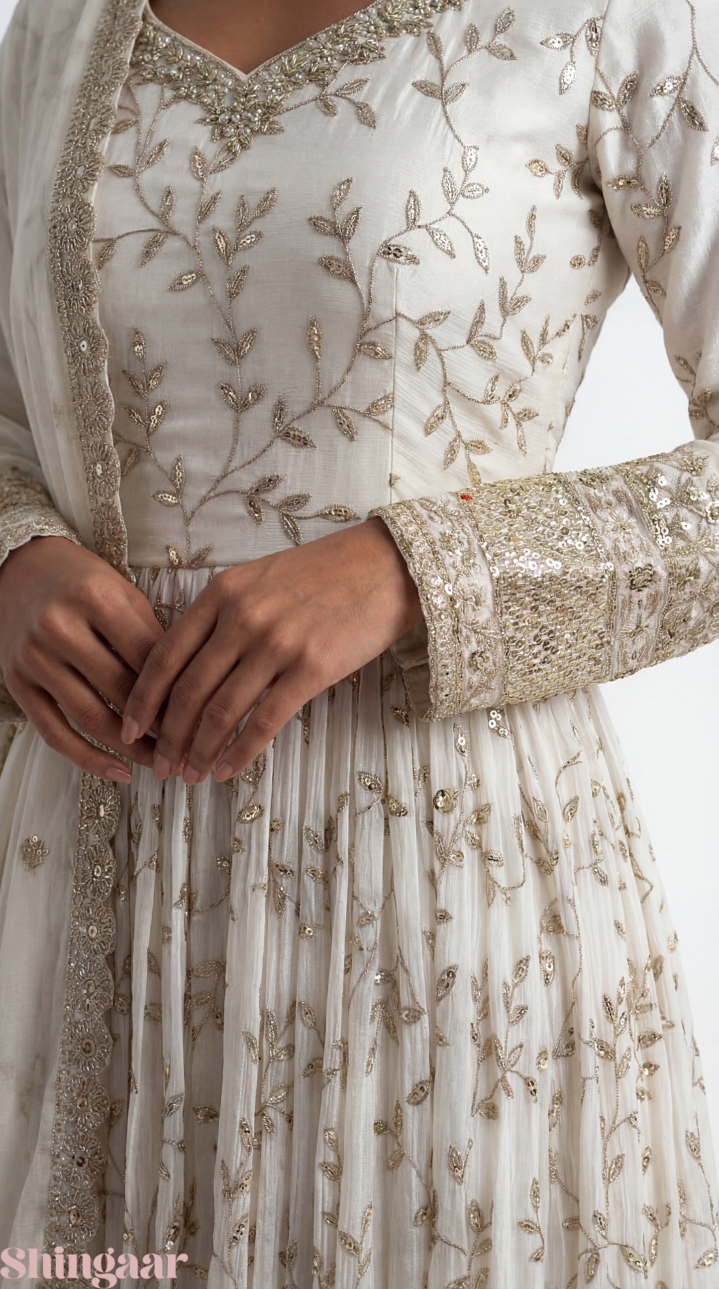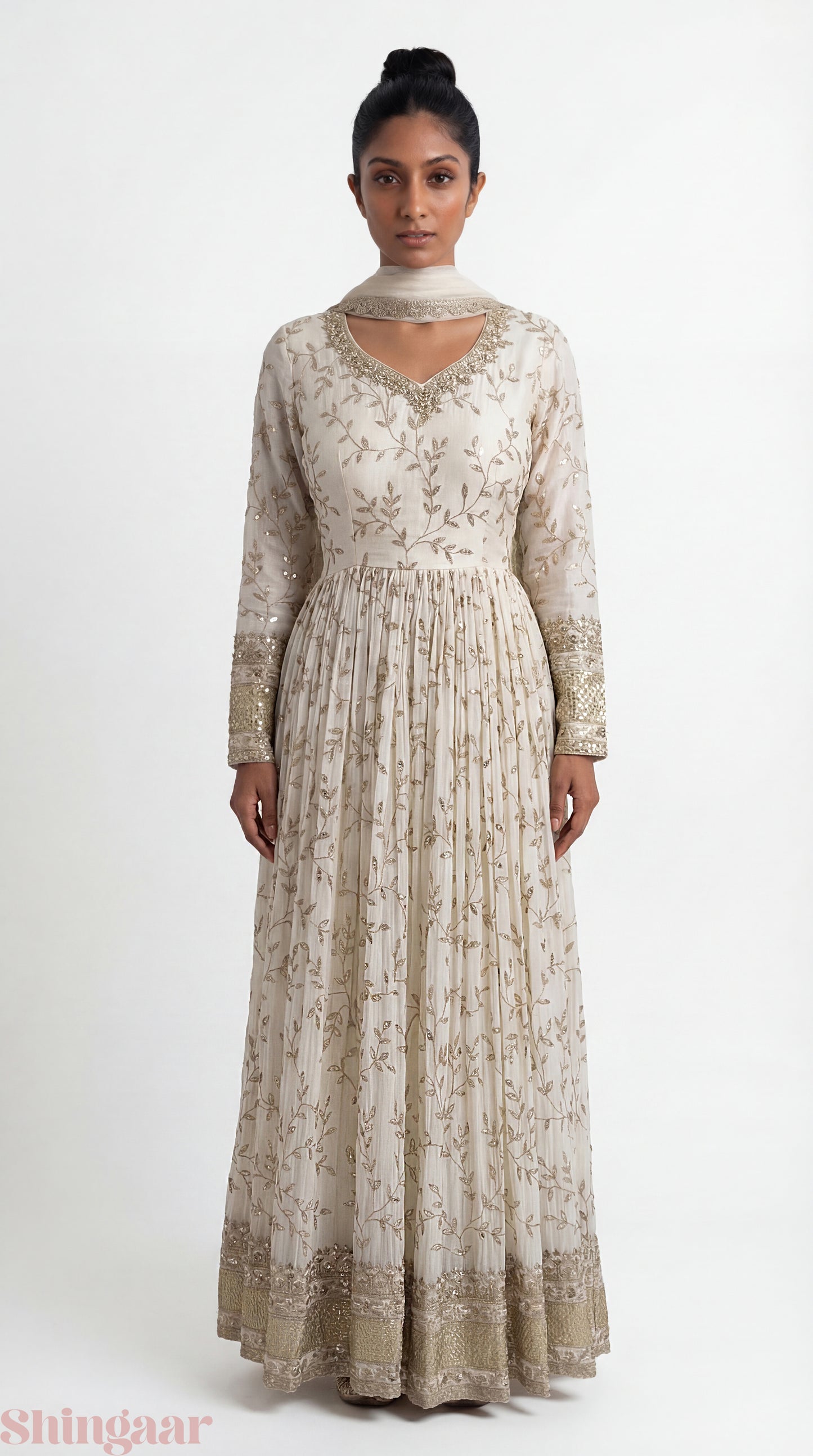 Ivory Chinon Embroidered Long Gown – Timeless Elegance