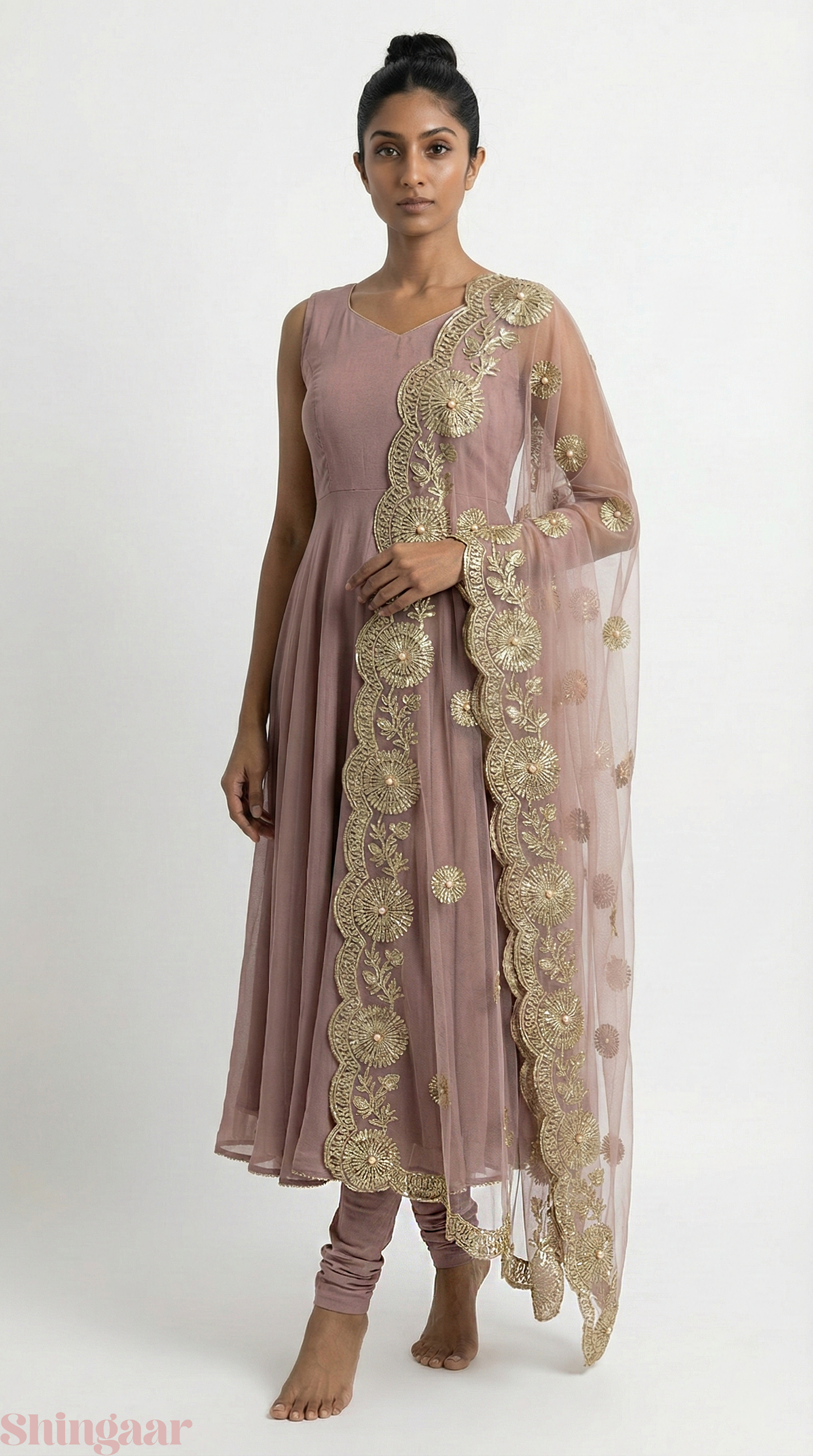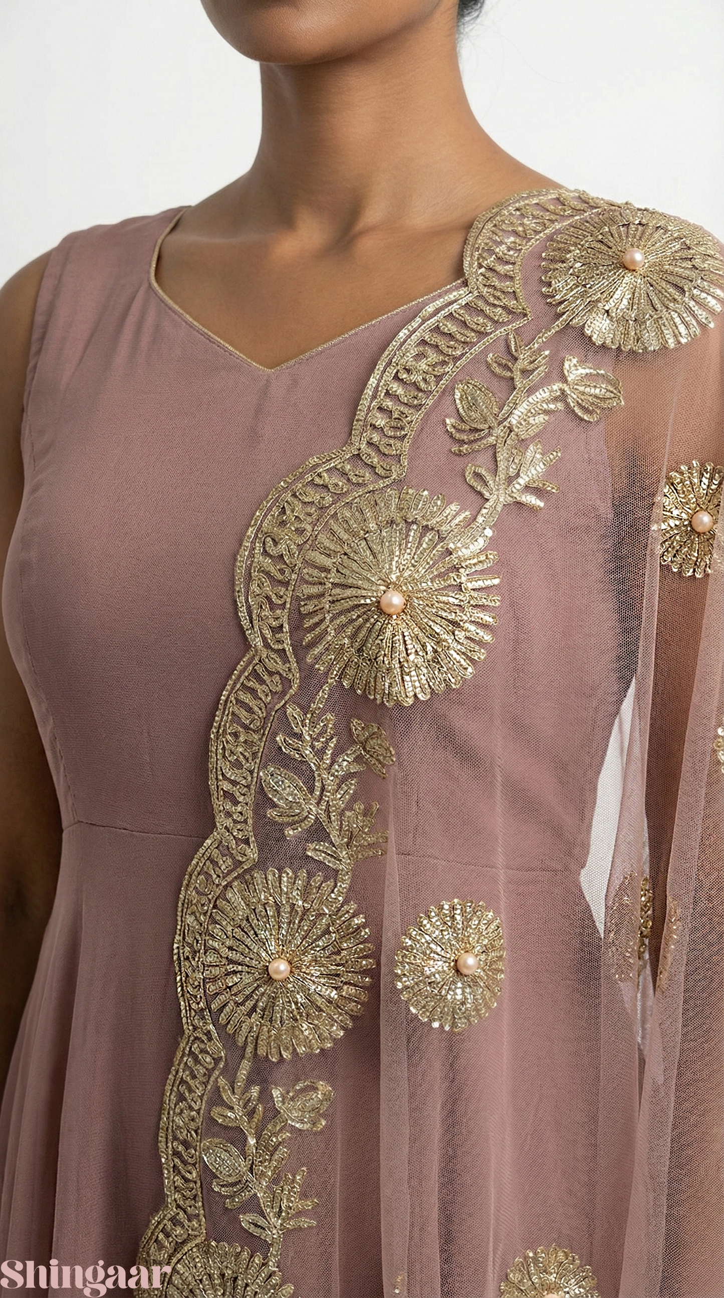 Pastel Georgette Anarkali Set with Gotta Dupatta Dusky Pink