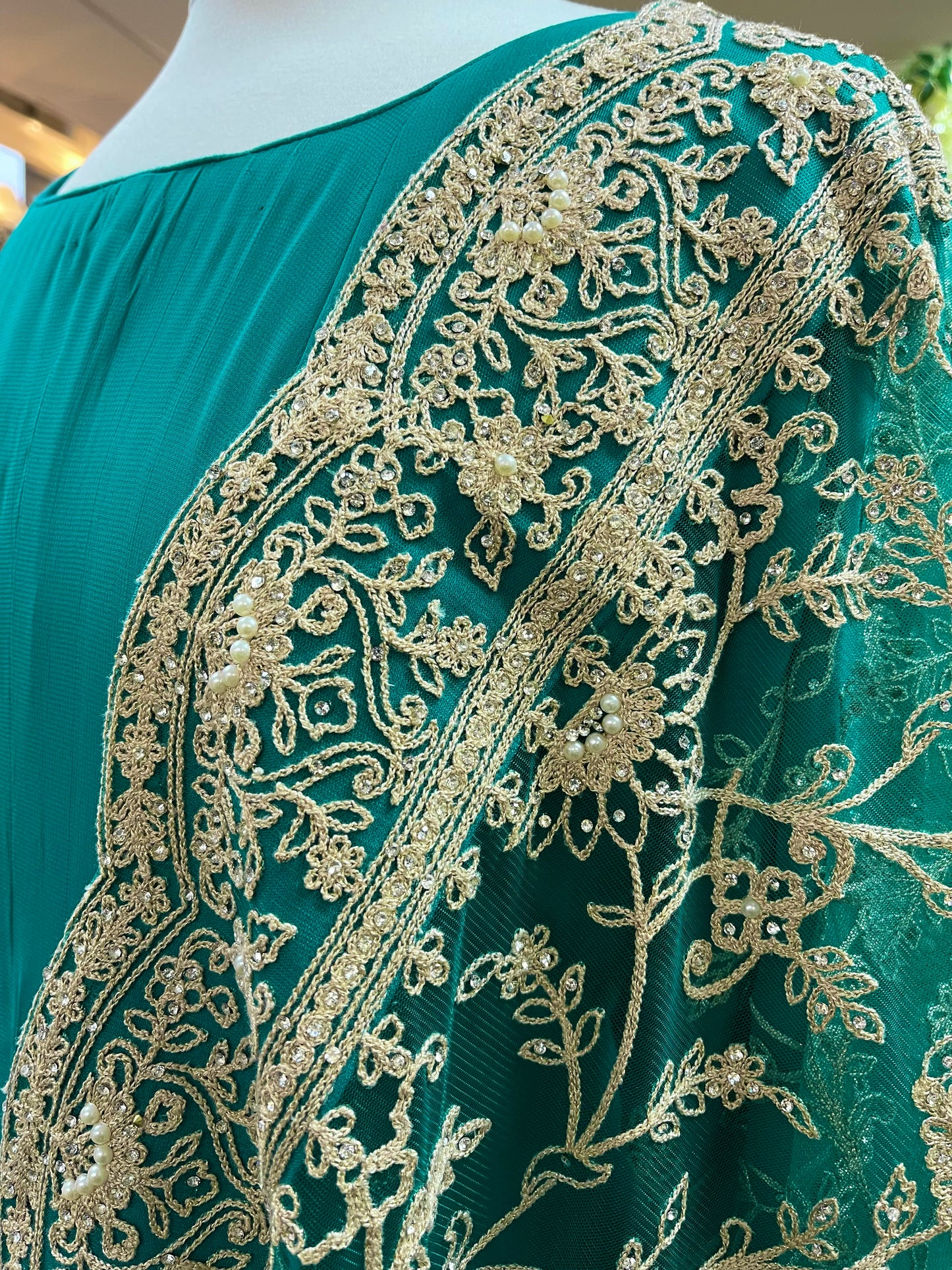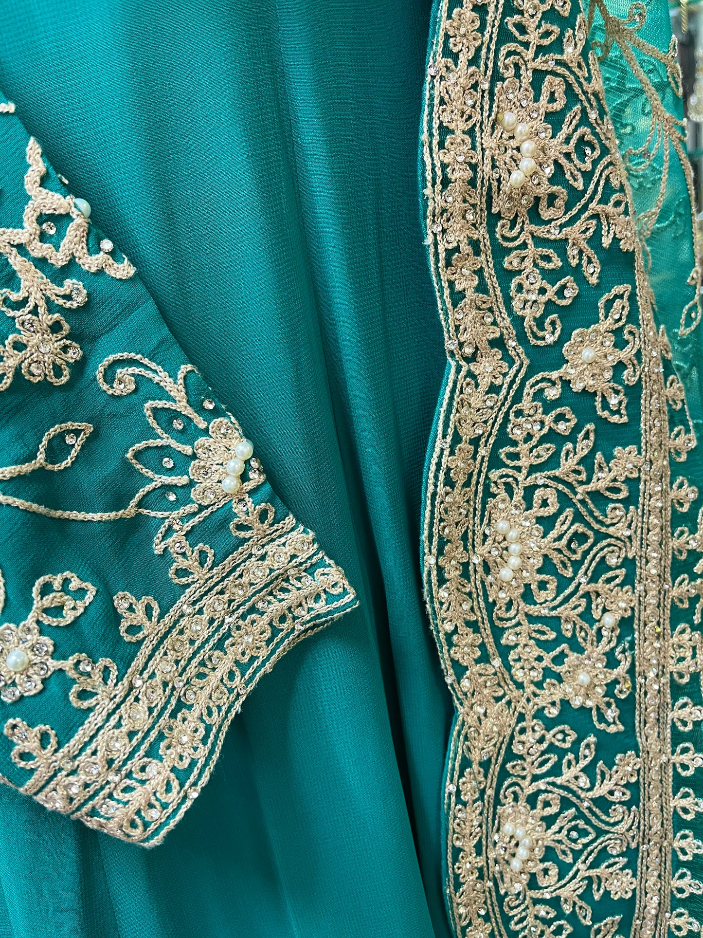 Regular price £80.00A beautiful Georgette Anarkali with gorgeous embroidery on the sleeves and a stunning embroidered Dupatta. The Anarkali can be worn as a long gown, or it can be shortened and worn with a soft stretchy Lycra leggings.