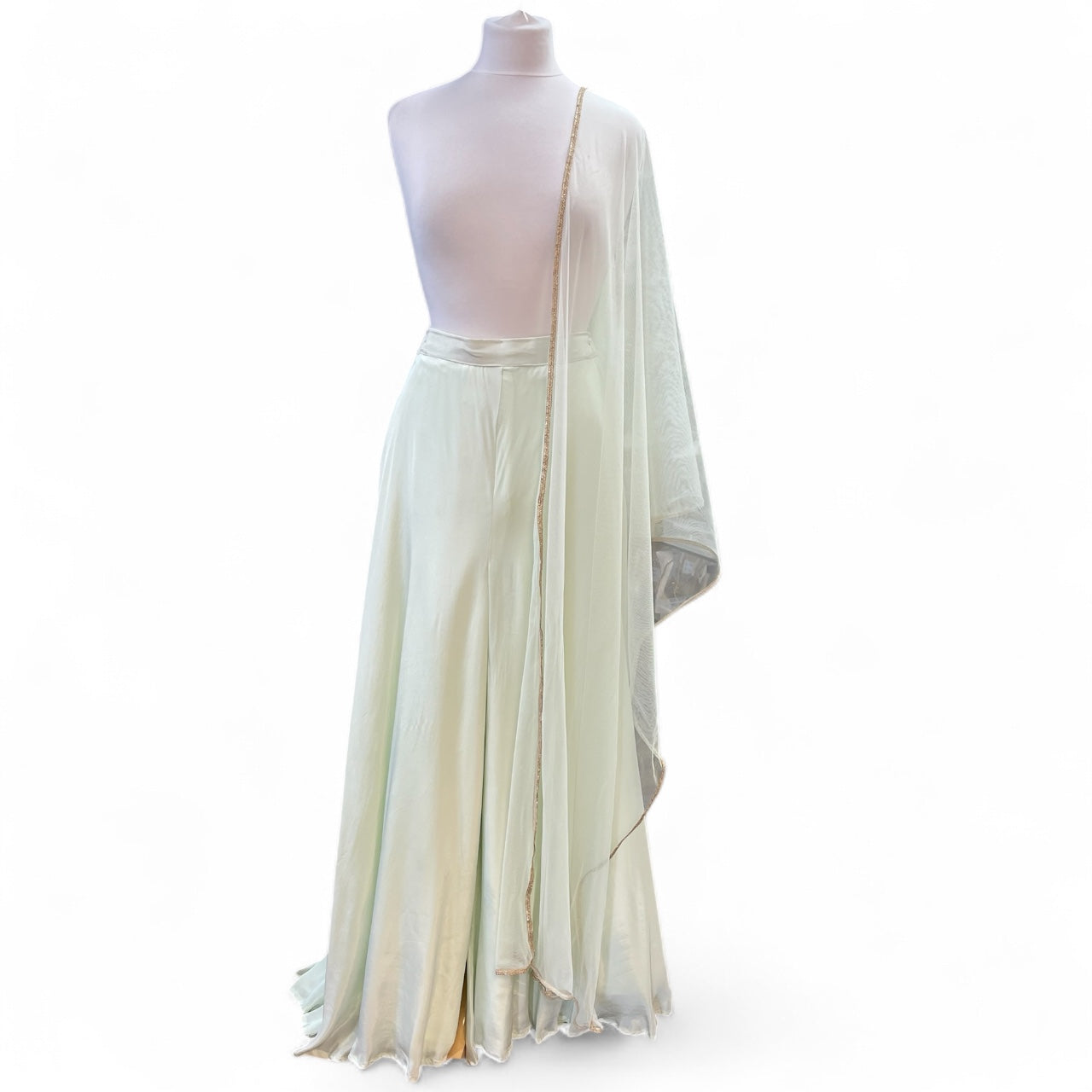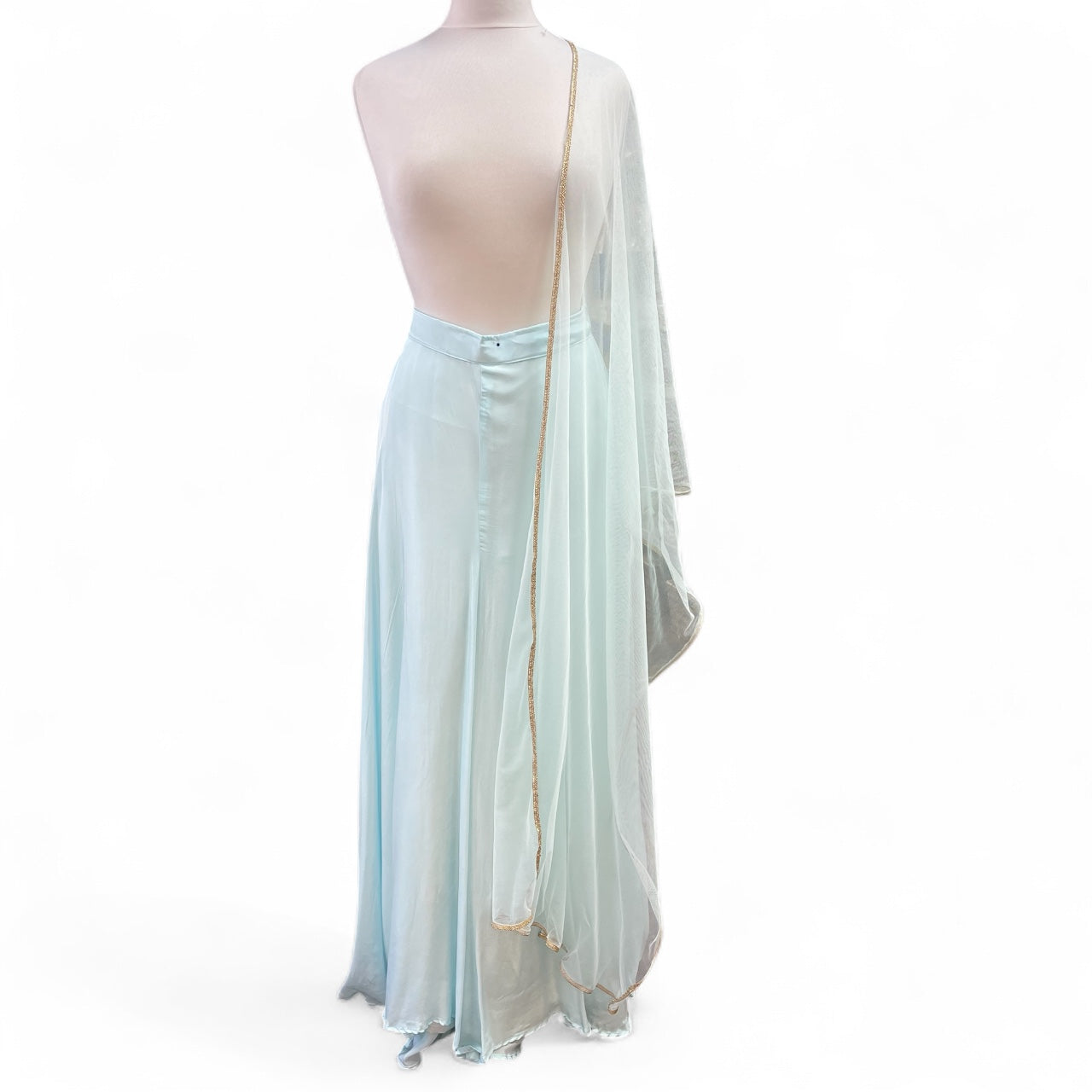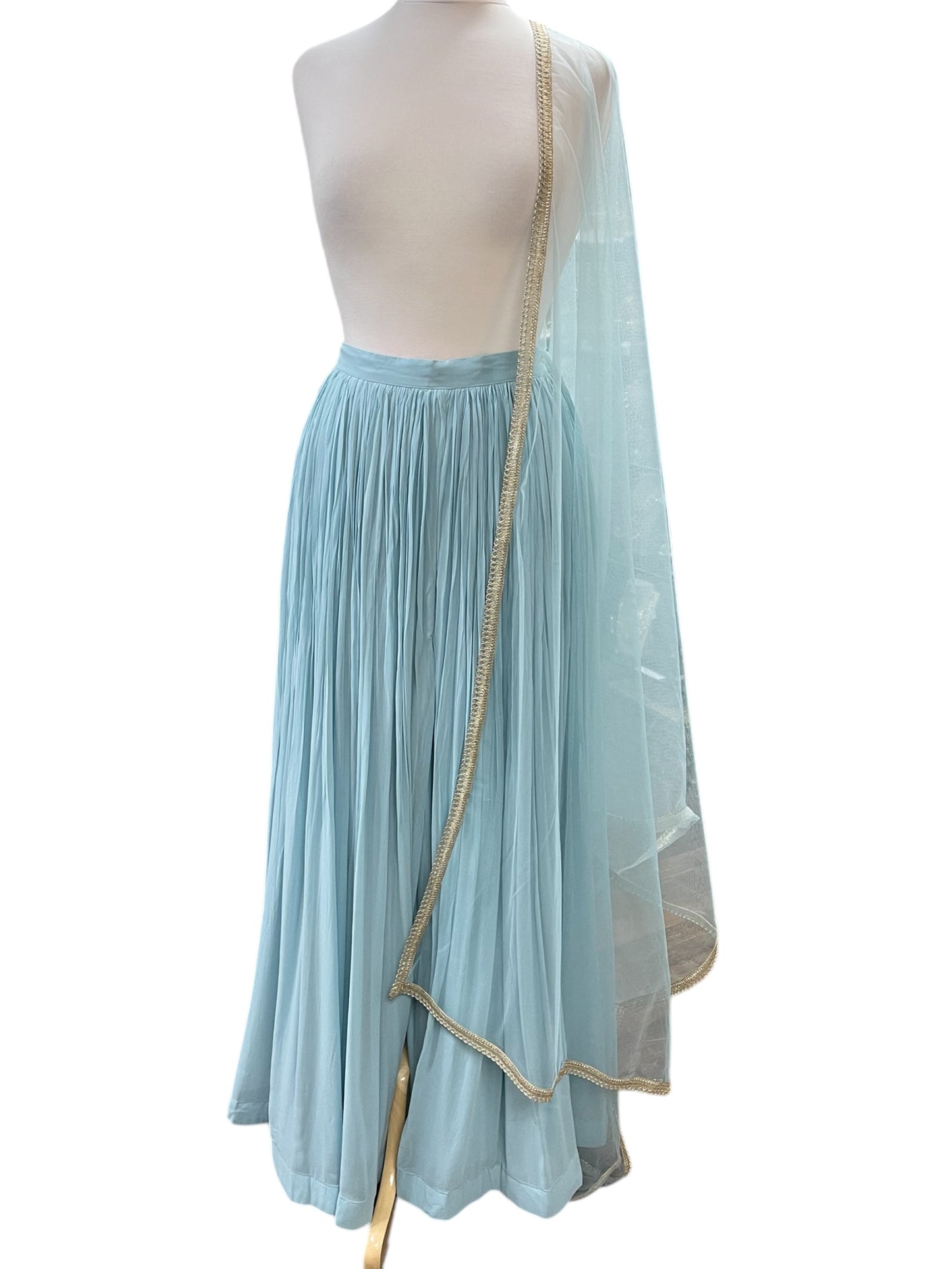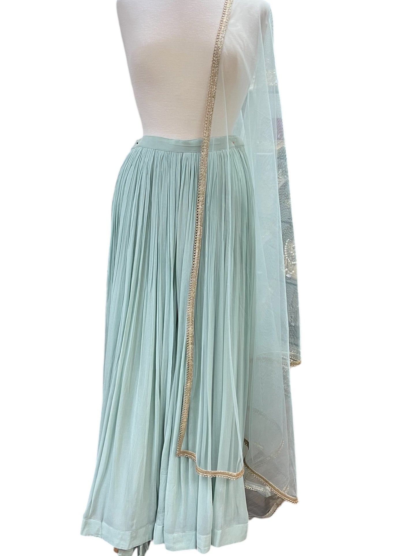 Georgette Pleated Sharara with Net Dupatta Duck Egg