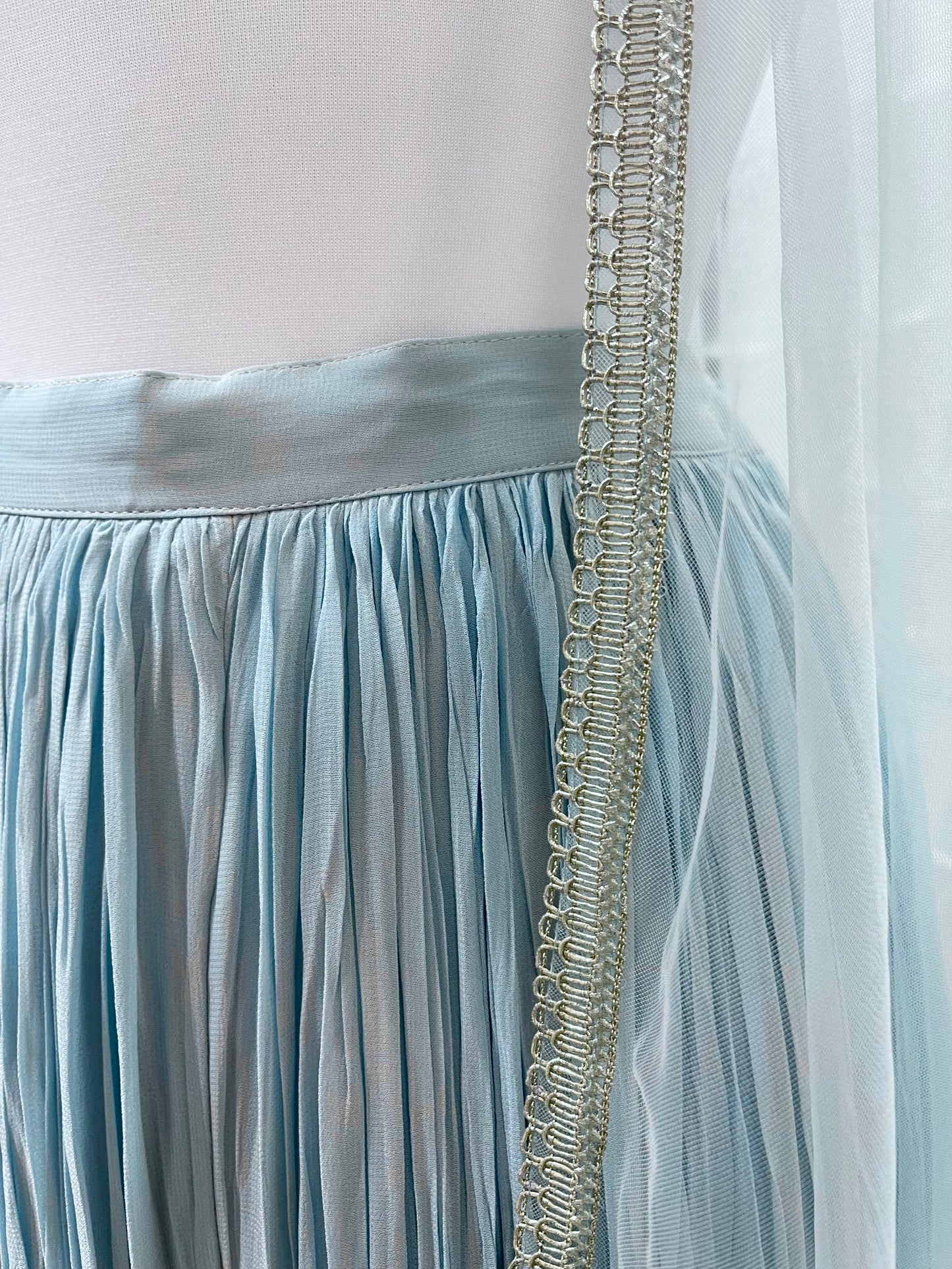 Georgette Pleated Sharara and Net Dupatta Light Blue