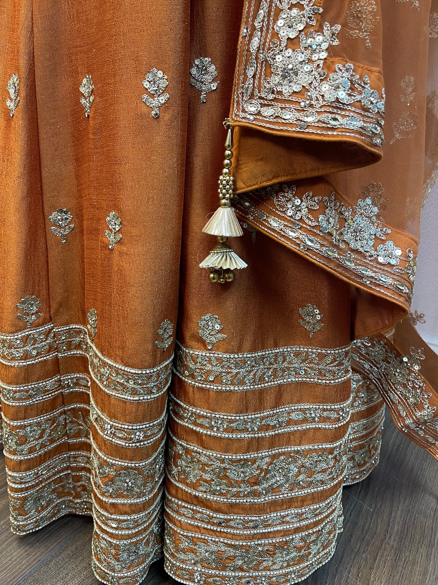 Royal Raw Silk Sharara Suit with Embroidery Rust