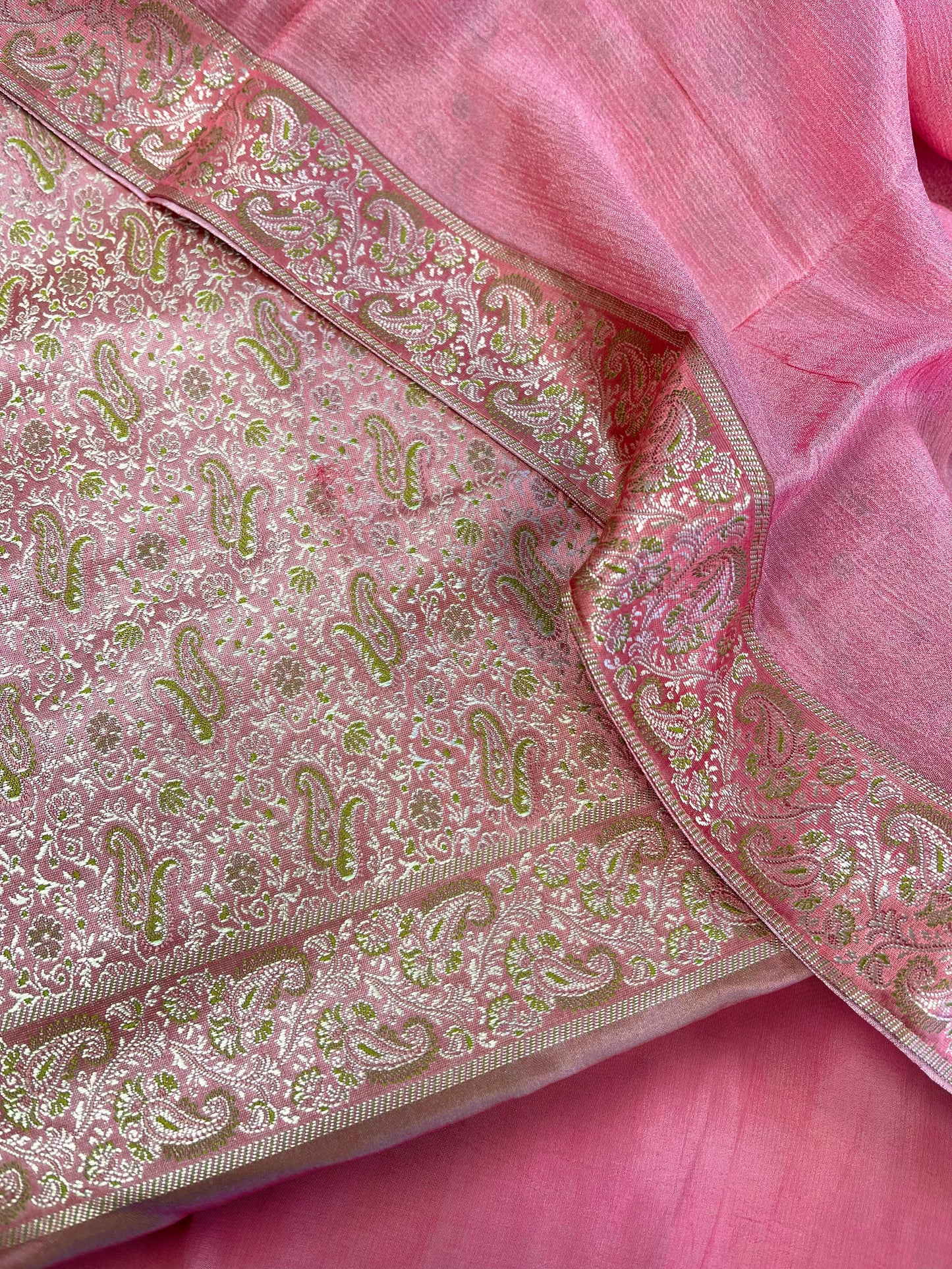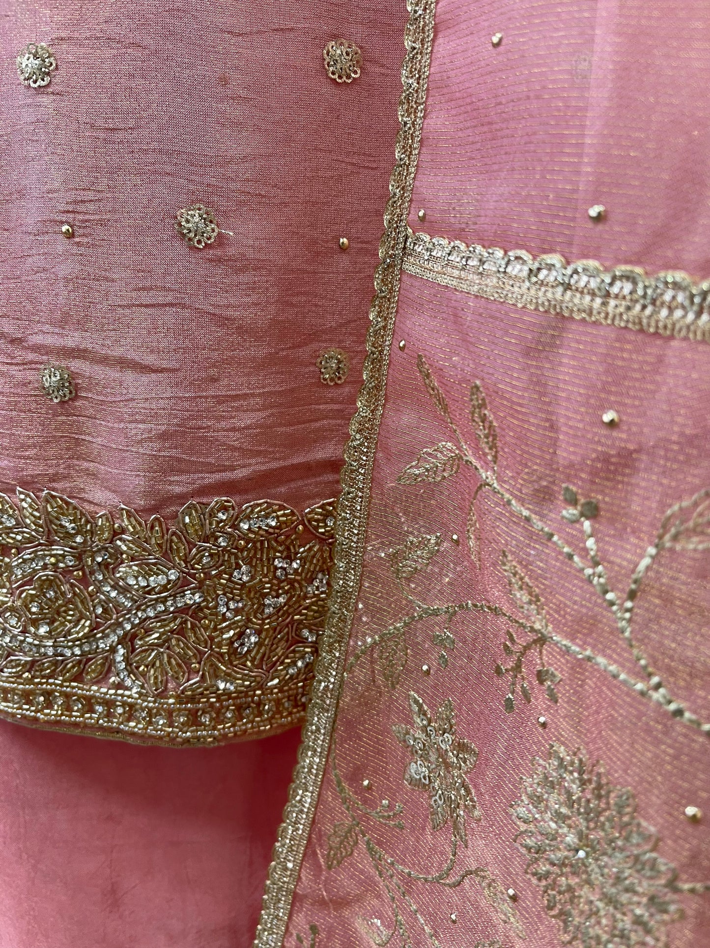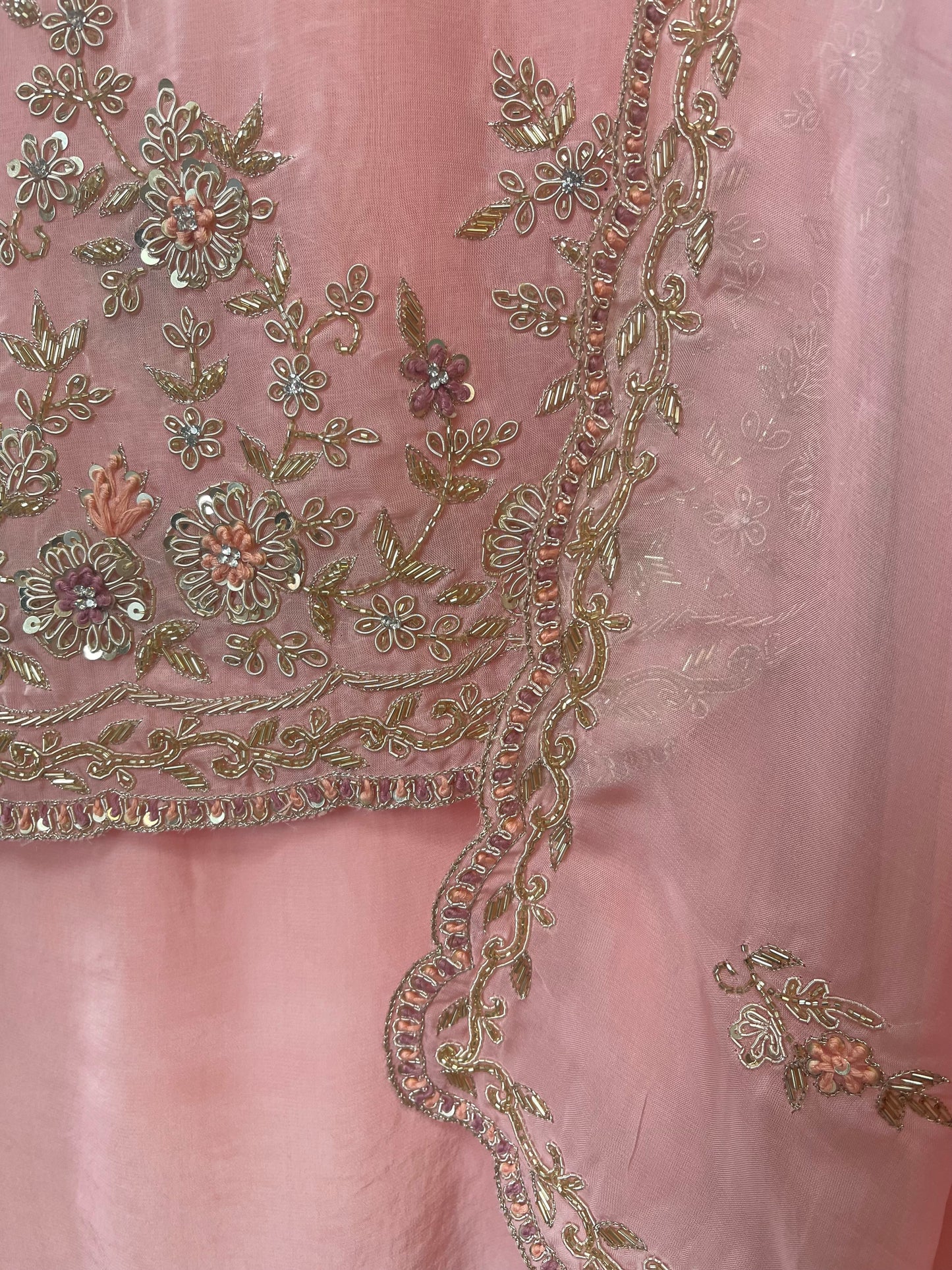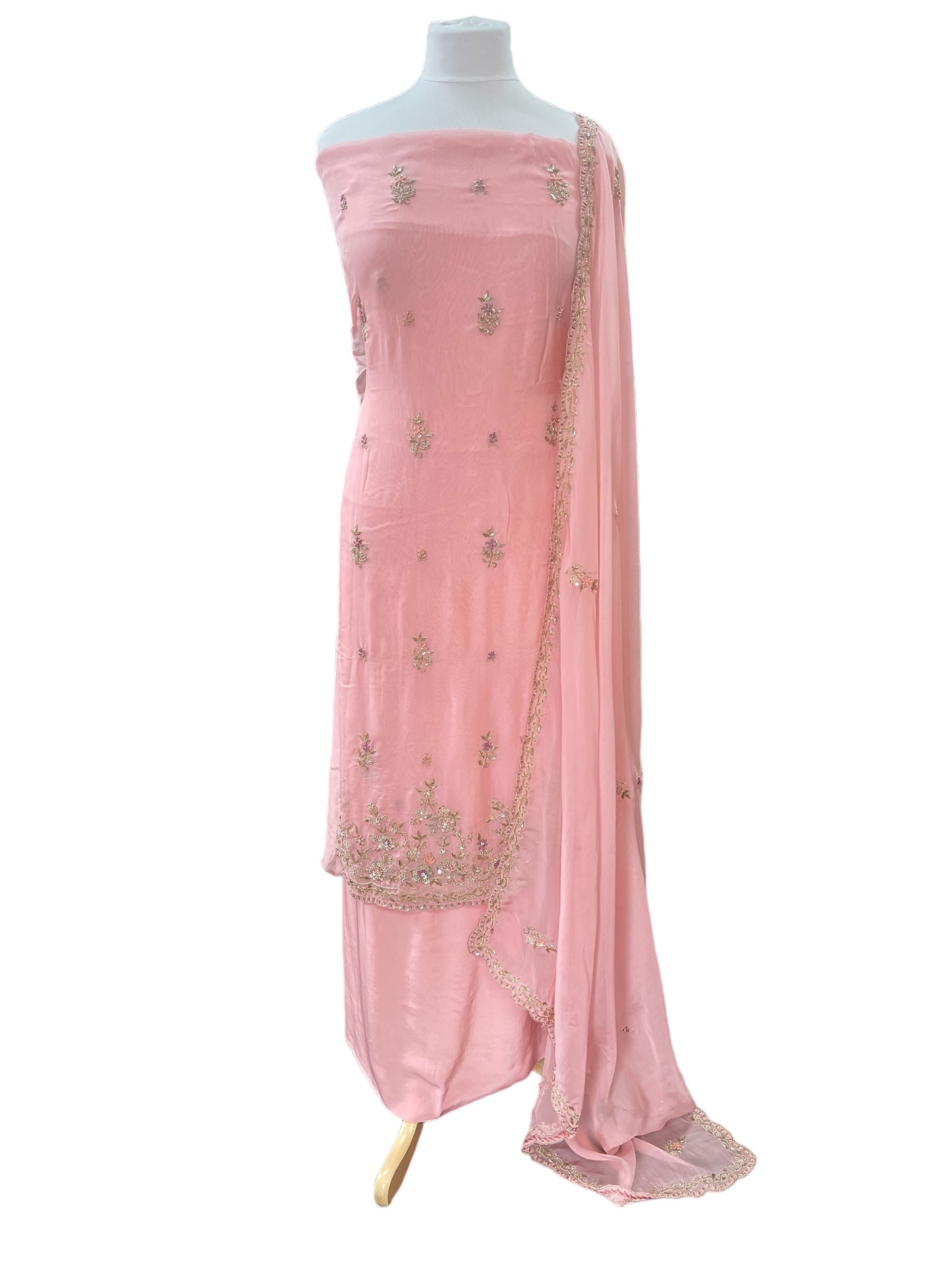 Satin Silk Hand Embroidery Unstitched Suit Pink