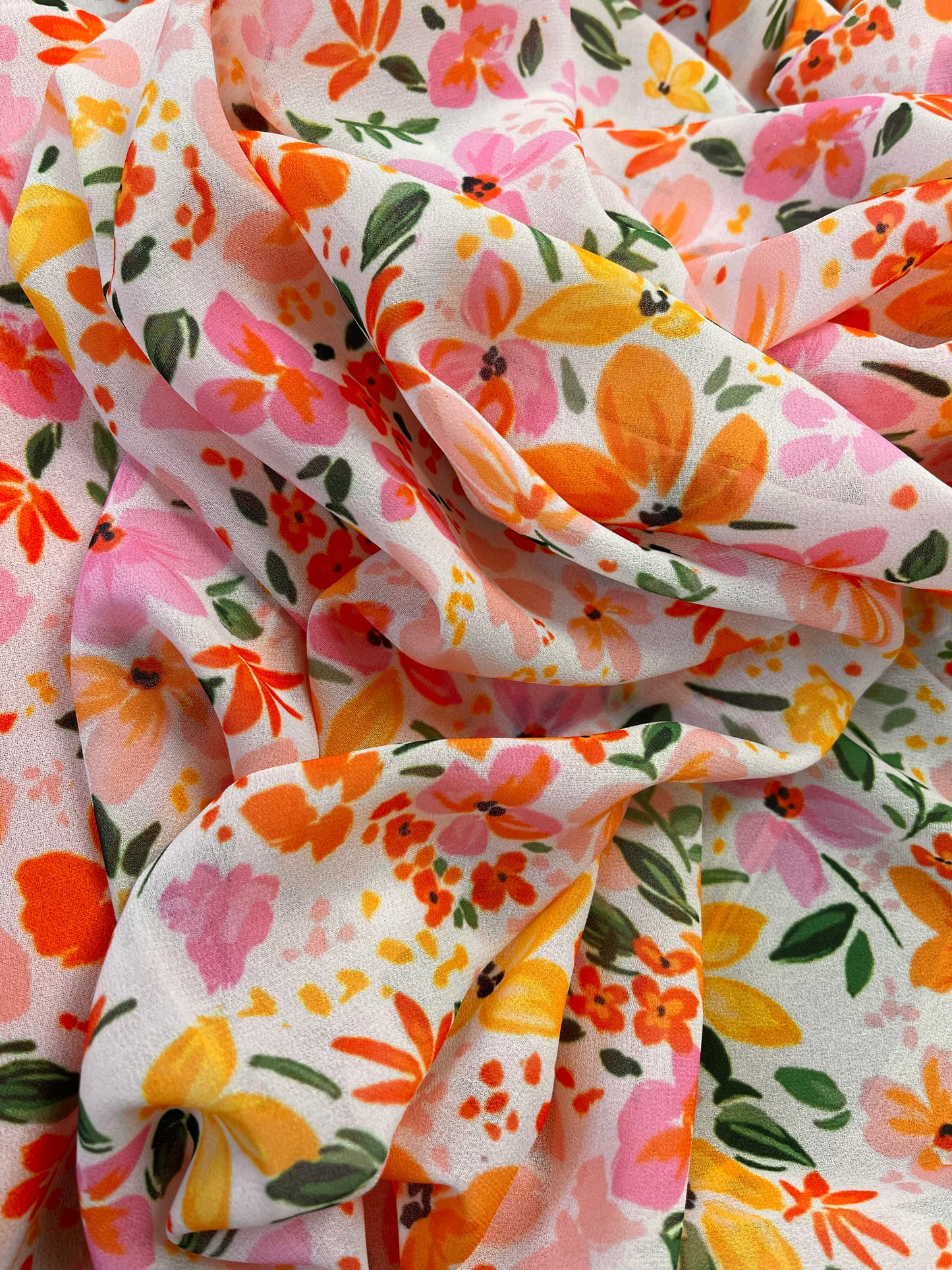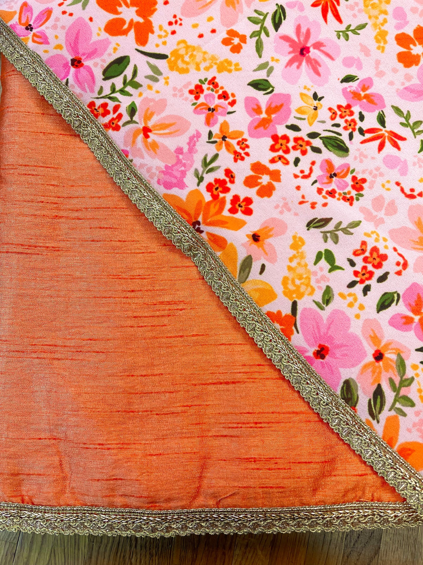 Raw Silk Unstitched Suit with Floral Dupatta Orange