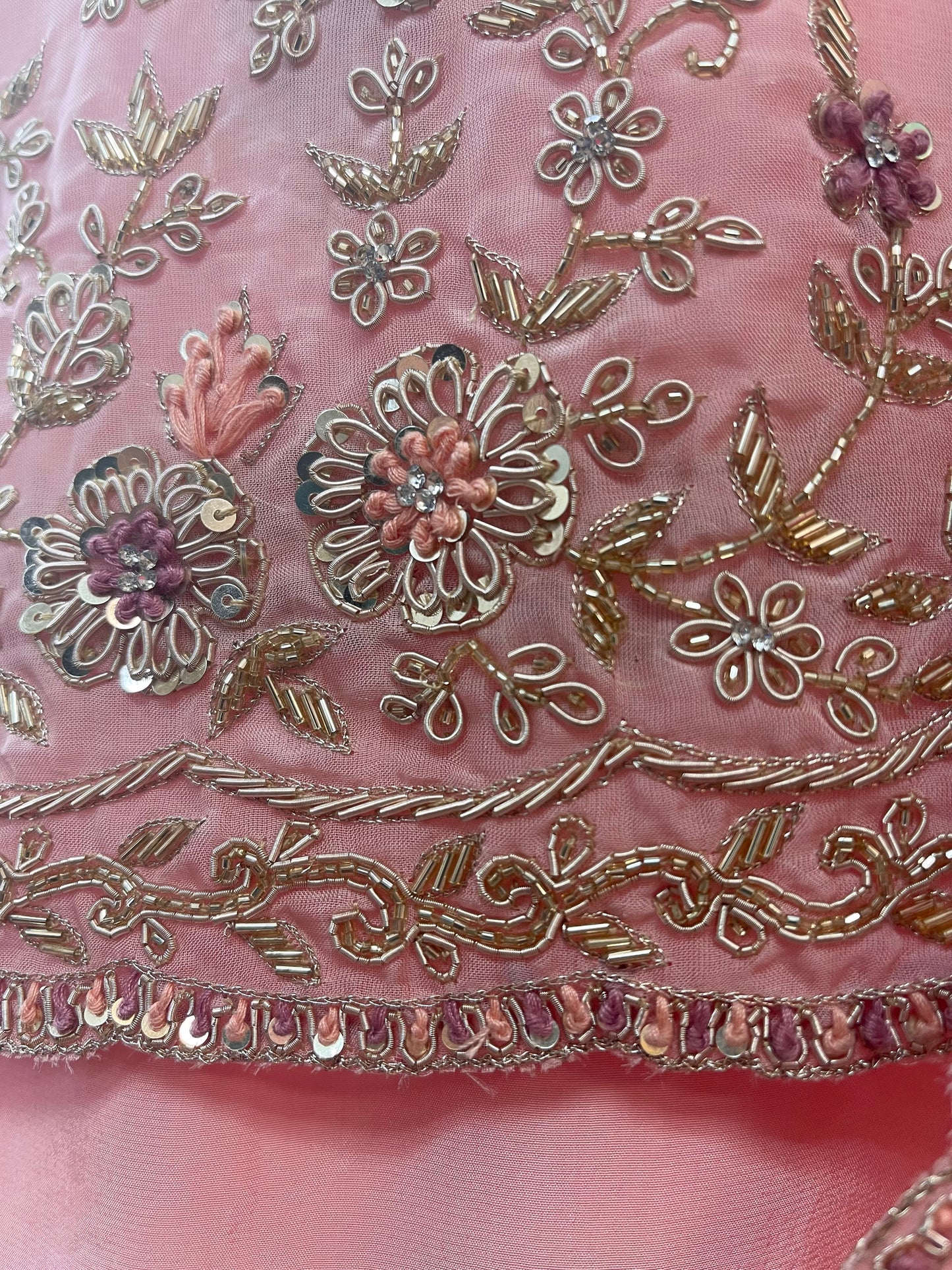 Satin Silk Hand Embroidery Unstitched Suit Pink